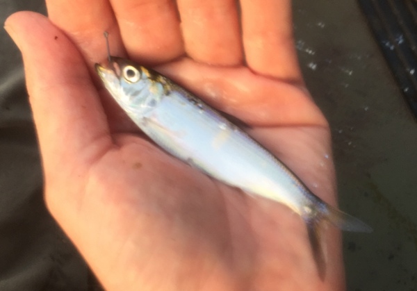 I assumed they were alewife, but I'm thinking maybe they're young-of-the-year shad. What do you make of this?