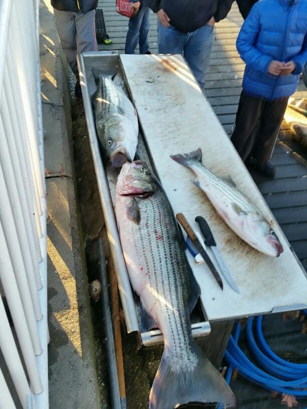 Just beat on the STRIPERS today. People had 8 to 10 fish a piece but they had to release some. We had four fish between 40 to 50 lbs. each. There were many limits including bonus fish. It was crazy fishing.