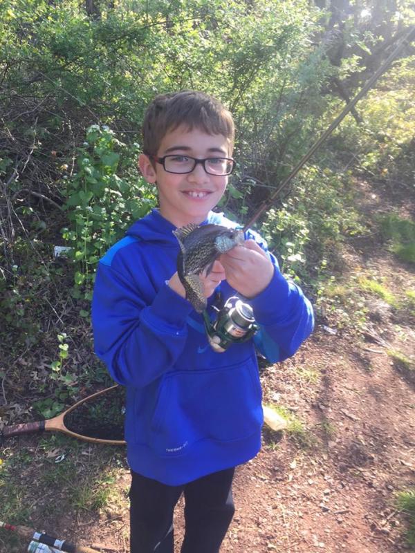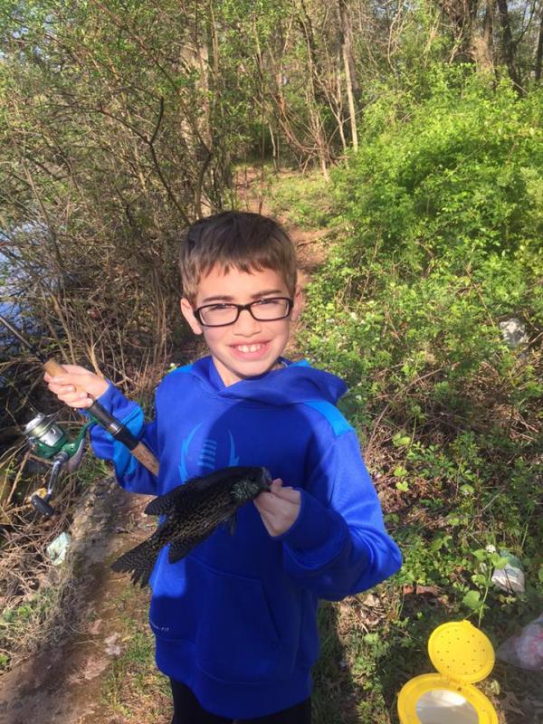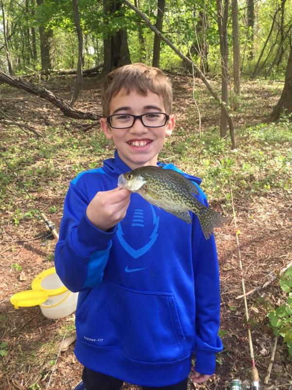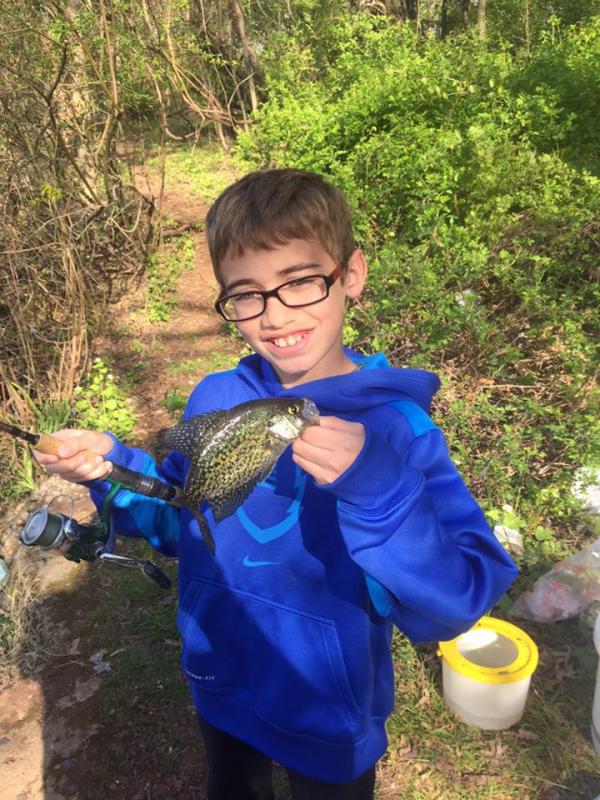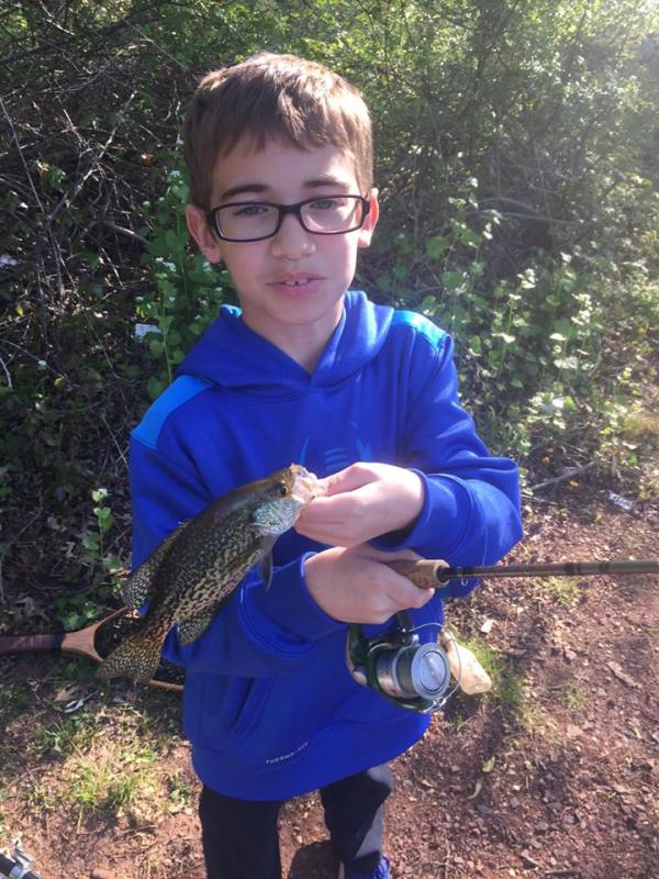 My son had a half day of school...so rather than sit around the house all day and watch TV, we decided to go fishing. We clobbered the crappies that day, as we eventually ran out of rosy red minnows, and had to "recycle" some of the ones that were shaken off of the hook. Crappies could care less...my son ended up catching over thirty crappies, and I did not catch one...which makes it one of my best fishing trips ever. I could care less that I did not catch one fish...watching him made it all worth it! Biggest one was a little under twelve inches.