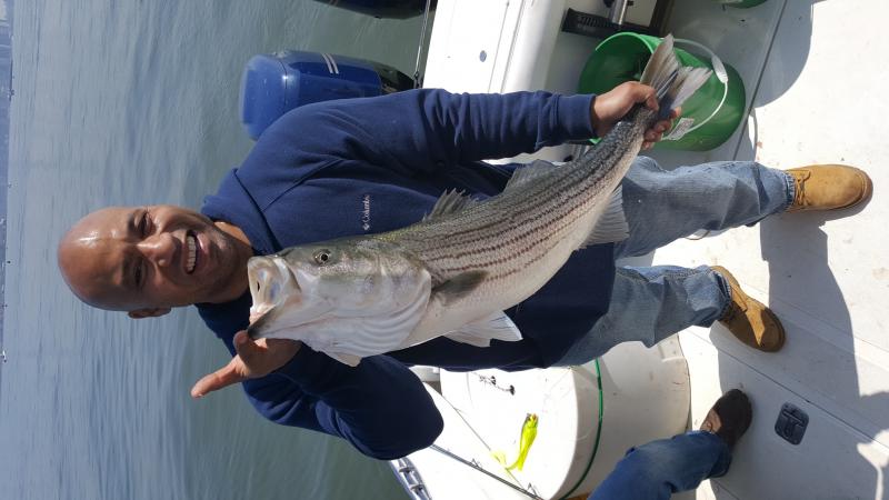 Ran a charter today for Joe and friends. Found the bunker real quick and headed to the bass grounds. After a short while we had them dialed in. Landed some nice bass. Then it was time for the kids to have some fun with the blues. We anchored up and it was game on from the start. Alot of sore arms and everyone had fun.