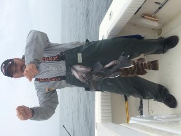 it was a beautiful day on the water, and its about time we're getting some warmth in the weather too. Once we got our limit we decided to try out a few more areas for the rest of the week to try and get away from the shorts. Everywhere we tested had tons of life, and even bigger fish. So its looking even better for the rest of the week. Had a couple ling mixed in as well and a real nice blackfish. Several double and triple headers. We do still have A spot for tomorrow; as well as openings thursday friday sunday and monday.
