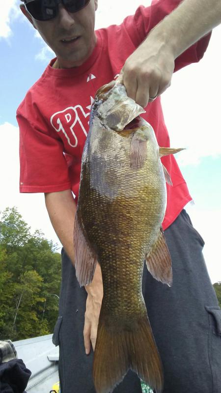 Played hookey today and I'm sure glad that I did. After many fishless days trying for them, I finally popped my cherry on my first WALLEYE...AT MONKSVILLE....at 11:30am on a sunny day!?!?!? You hear the one about the blind squirrel finally getting a nut, I'm living proof today! Also landed a personal best Smallmouth just shy of 19" but a big fat piggy beast. Just shy of 4 lbs, maybe call it 3.75? My scale is not digital (is it analog then?) The smallie had a buddy of similar size swimming alongside it up to the side of the boat. As much as I hate Monksville somedays, there's always been memories that keep me coming back there and today was one of those memorable days.