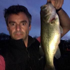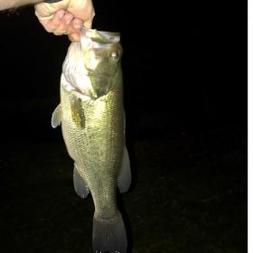 Last Thursday was the beginning of a nice run for me. It started late Thursday night (Friday morning) after a great hockey session which left me filled with energy despite it being after midnight. I was off Friday so I stopped at a local Union County spot where I know I won't get hassled for fishing in the middle of the night. Earlier that day when I was packing a few poles in the car I was looking for a lure I could tie on just to hold the line on a baitcaster and grabbed the first one I saw (a huge buzzbait that had been sitting in my glovebox for past year since I never use them). When I got to the pond I didn't want to waste time tying on a new lure so I just started tossing the buzzbait while perched precariously on a laydown that enabled me to make long casts parallel to the bank. Three casts in and I get slammed just a few feet from where I was standing (thank you trailer hook). I am not sure what I was happier about, the fact that I finally caught a fish on a buzzbait or that the aforementioned fish was close to my PB (at least in weight - est. 2.5-3.5 lbs - super fat but not too long).