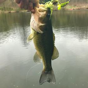 Monday I worked from home and the conditions in the morning were too perfect for me not to go and take a few casts. I went back to the pond where I had luck on Thursday with the buzzbait and figured, lets give it another try. Standing on a different laydown I once again cast parallel to the bank and burned the lure back to me. After 3-4 casts I landed another respectable LMB and with that catch the buzzbait is now officially part of my arsenal.