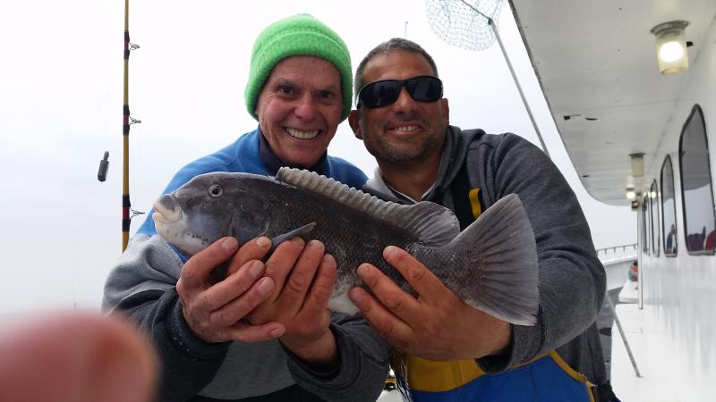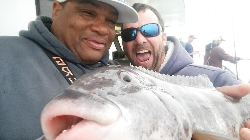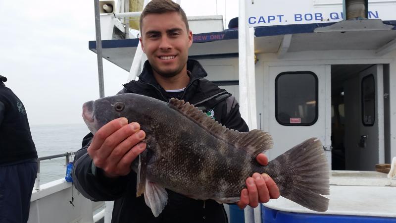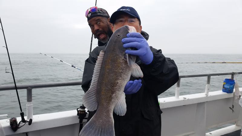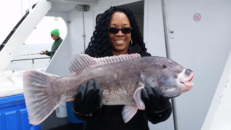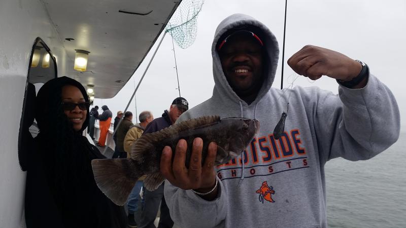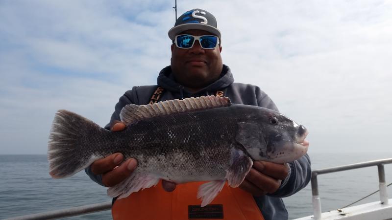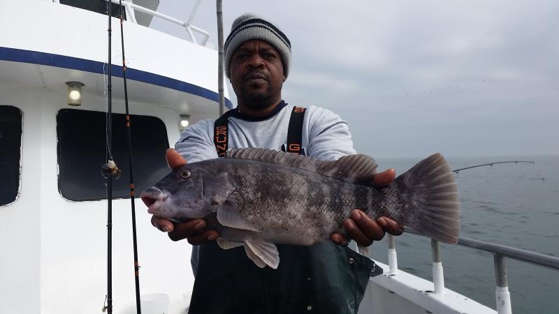 Good to be back after a nice vacation......Today very nice day to be out...and the blackfish had the feedbag on...Very good chew as soon as we started today,,stayed that way most of the day on a couple of different drops....Needless to say guys did well limiting easily,,,even some first timers caught there first togs...check out a few pics.....fishing very shallow now that the water is up to 51 degrees....Tomorrow looks good..see ya for coffee...