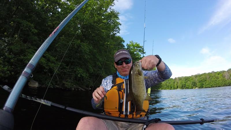 Around 5:30 AM halfway between there and Bridgewater I realized I forgot sunscreen. Going to get a new drybag for essentials so I can bail myself out when the memory fails as at that hour there was no place to stop in a pinch. When I arrived only one other car was there. I also found one of the rear saddles on the roofrack kayak-holder had somehow cracked when I arrived too. ![]() The launch is no joke for a well-rigged fishing kayak, multiple rods, and a small cooler. Once I had the yak in the water and I went to install the pod with my fishfinder, battery, and tackle I slipped and slid on the mud into the water. Landed on my feet but had a skidmark on my shorts for the day and had to use my kayak seat in the car so I didn't deposit any on the car seat. Water was calm and winds light when I got out around 6:30-ish. I had very limited knowledge of the lake having only fished there once before 5 years ago with a guide only for a few hours. When other guys got out after me they seemed to head straight for the back portion, not sure if this part is more fishy or just a way to be left largely alone by the googans who arrive later in the day and don't venture as far? I picked up 2 pugnacious smallies, one before hitting the big island in the middle and the other along the left side of it. I had a ton of tugs and pulls but only managed to hook into those. Wind picked up and it was a bit tough from there. Paddled/trolled around and marked a lot of sizable fish but nothing doing with that. Found a big-boulder that made an island and called it mine by peeing on it. Didn't make it all the way to the back but close. Very different kind of water constantly only 3 to 4 feet deep and a lot of lily pads and vegetation. Looked promising to get my first Split Rock largemouth but wasn't meant to be. Wind was going against me the whole paddle back in so took awhile. Got back to the boatramp around 1 PM so a good, long day on the water. Arms were nice and tired. Note to self, the "launch" area is to the right of the 2 paths down. I mistakenly went left which had an area that was easier to get stuff out of the water but a lot more difficult situation getting stuff back to the parking lot. Won't make that mistake again (although there were people fishing from shore in the other area where I had launched from which would have been another pain). Really enjoyable lake to be out on, will try to visit again this summer if I can. Pic of the bigger of the 2 fish, nothing huge on the day but enough to pull me around a bit and show off some aerial acrobatics.
