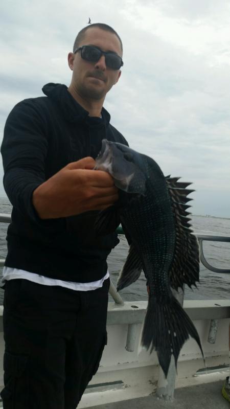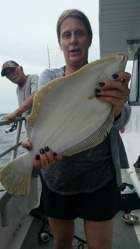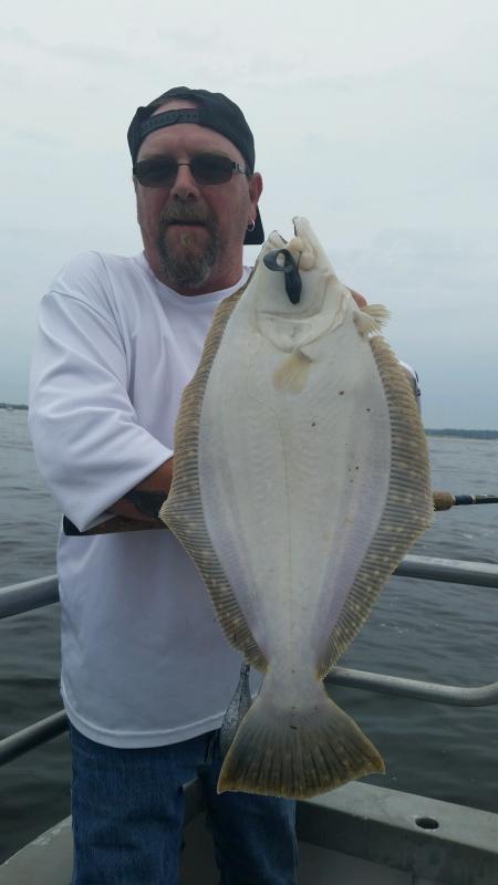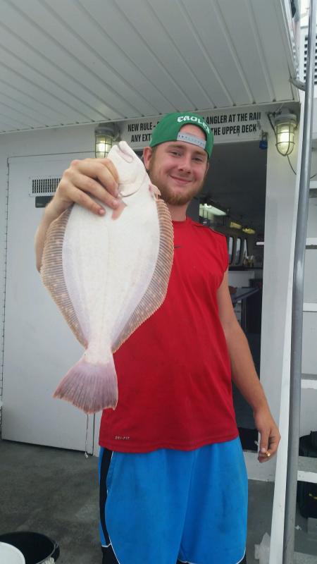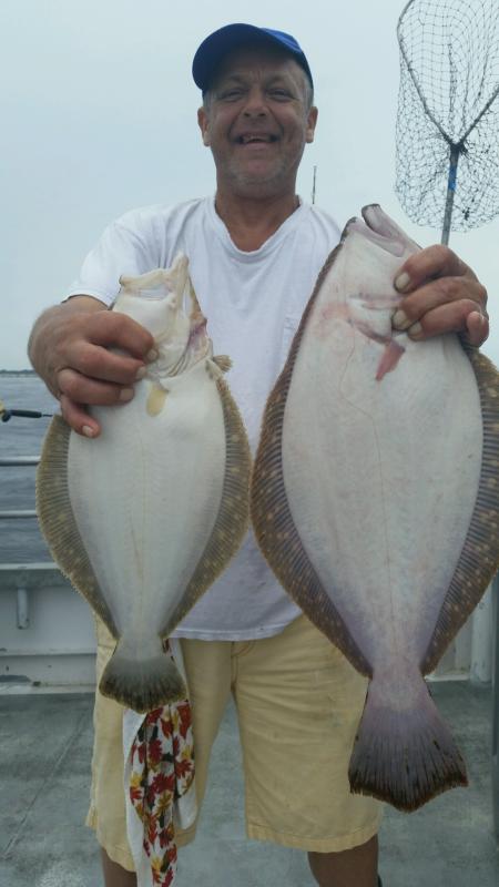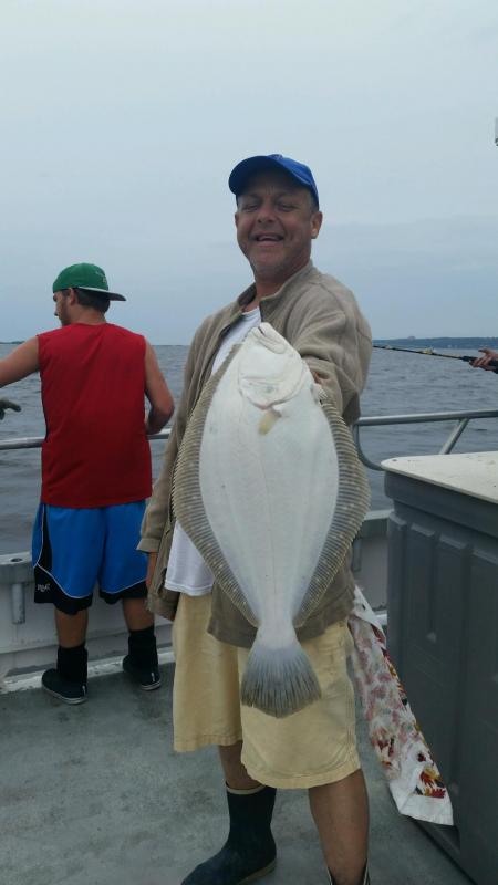 Hey gang, Capt. Scott here. I left first today and got out here kind of quick. I wasn't even done with my announcement and we got this doormat. We're fishing in the ocean again. All regulars on here today. Great people, 10 lbs on the button, and we're catching other nice quality fluke along with big sea bass. I'll follow up later. Here's some pics. Thx., Capt. Scott