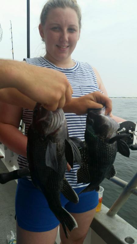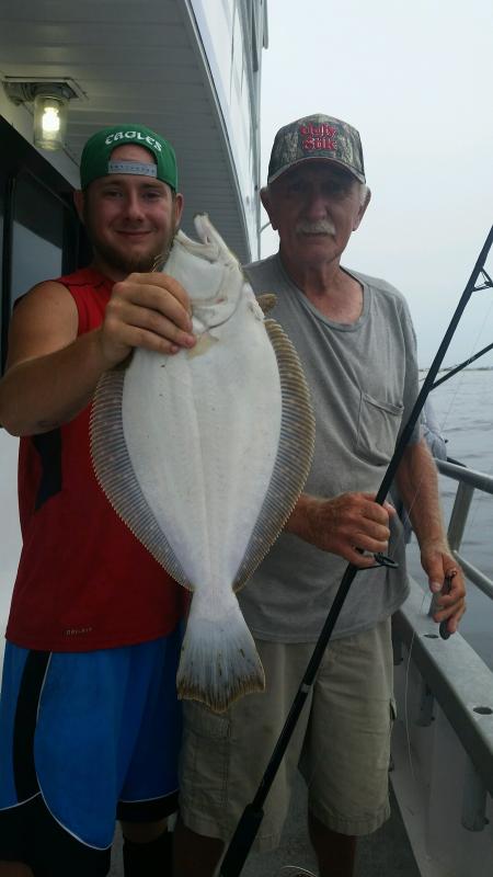 UPDATE: A few with limits, several with 2 keepers and some nice fluke today. Getting a roll out here, we're going to head back to calm sheltered waters in our bay. Six more keepers in the bay. Not shaping up tomorrow (Friday) with the rain in the forecast. Next trip will be Saturday morning. Saturday looks beautiful for both trips. See you 5:30 a.m. on Saturday. Thx Capt. Scott