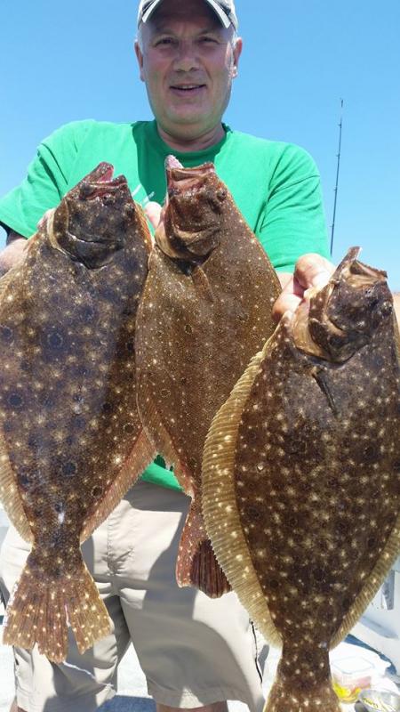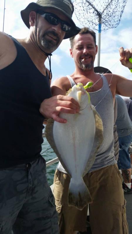 Hey gang, nice crowd of customers for a beautiful day out on the ocean. 3 or 4 limits on keeper flukes today with plenty of other people with limits on nice big sea bass. Bob of Bergen County had his limit at 11:30pm on fluke today. I have Robbie and Jimmy working deck today working real hard. We're out Monmouth Beach again. Me and Shane will see you tomorrow, Monday morning at 5:30. Thx., Capt. Scott
