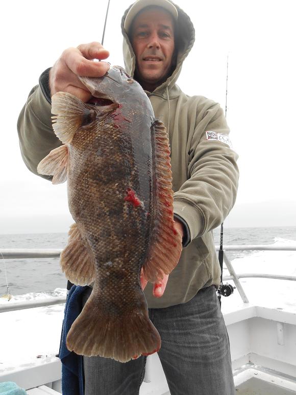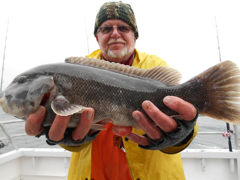Hey gang, Capt. Scott here. We had dense fog all morning, plus we weren't able to get the anchors out with the floppy moppy conditions but for the last two hours we got the two out and we're banging away at some nice big tog. A few guys with limits, some guys with four or five and some guys with two or three. But we're putting in OT today, we'll be getting in late....whatever it takes. Capt. Glenn said he'll see you in the A.M. Pool winner and photos later. Thx. Capt. Scott Heated handrails, heated cabin, green crabs and white leggers.