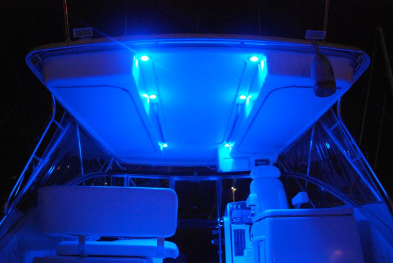 My over head courtesy light are tri colored and I find that I use the blue most of the time and hardly ever use the red as I can see the water much better with the blue and it's softer on the eyes. I think I paid a total of $100.00 for the ribbon lights for 16' (8' on each side) |