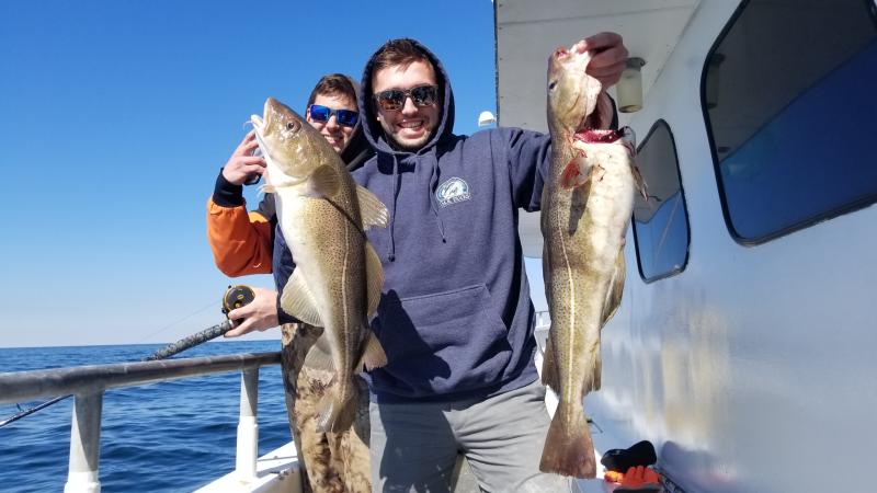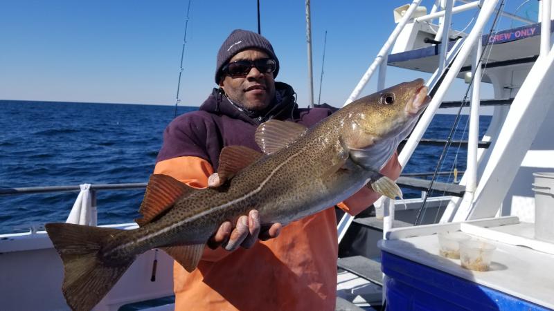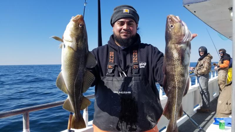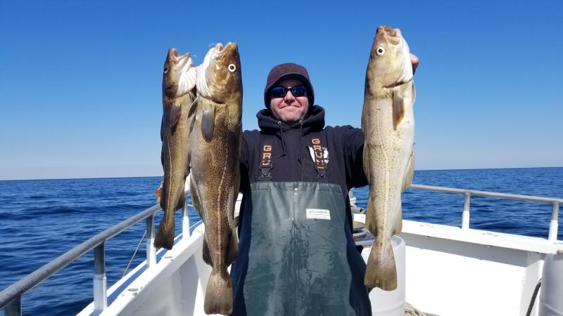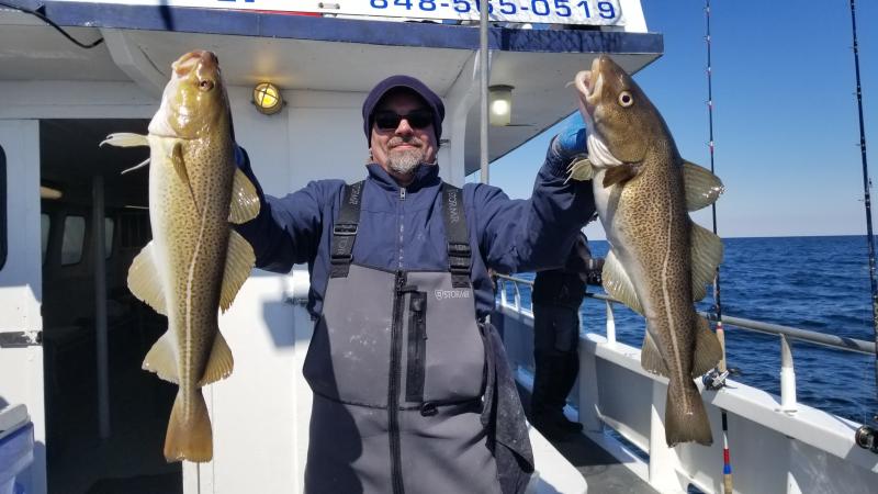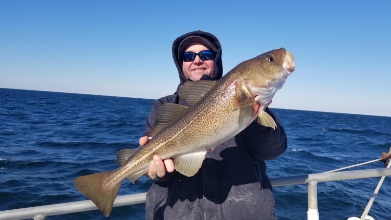 3-11-18 Weather wise you could not beat today,,,much nicer with less wind than yesterday..Much fishier to...Today we had a nice showing of Codfish on most of the drops....High hook had 7 Codfish....3 of them keepers,,but we also had guys with two keepers a piece....Spread out I am not sure of total number onboard but most guys had fish to go home with..We had some nice fish on jigs as well bait..More guys jigging I think we would have caught even more..The fish were filled with herring,,mackerel and baby sea bass.Just like a few years ago when we had very good fishing...We even a few times had 2-3 fish on at once....That last storm seemed to have pushed some fish into our area and hopefully the fish keep coming in....Great day out...have a few pics and a bunch of video on my face book page later...Check it out...Unfortunately the weather is going to crap again so no fishing for a few days....Northeaster starts again tomorrow then the cold front on the back side...Will take a few days to calm down..I will let you know the next nice day to get back offshore....