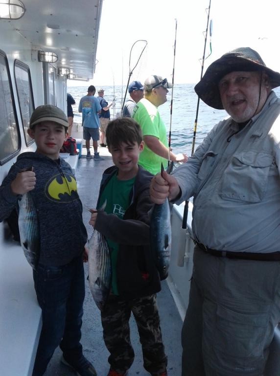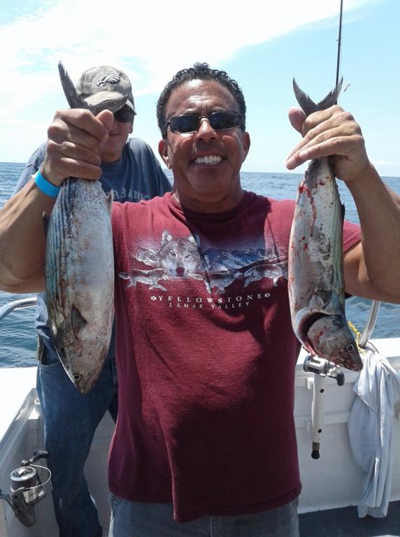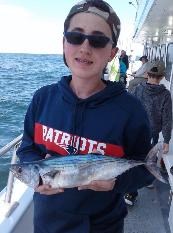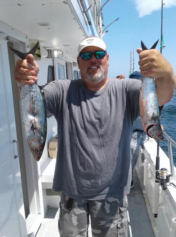 We had a DECENT day of fishing with a variety of fish. The weather started off a little rocky with a east northeast wind but when we got on the spot we saw plenty of fish. We caught some BONITO, BLUEFISH and MACKEREL.