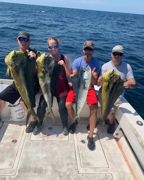 Adrian. Plan was for tuna hit a couple of spots but no luv, Gave the charter the choice to run way up north or crush mahi On the pots. They choose the latter proceeded to crush the Mahis Landing over 30 with half a dozen slobs between 15-18lbs.