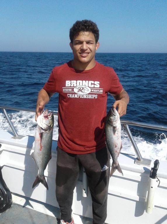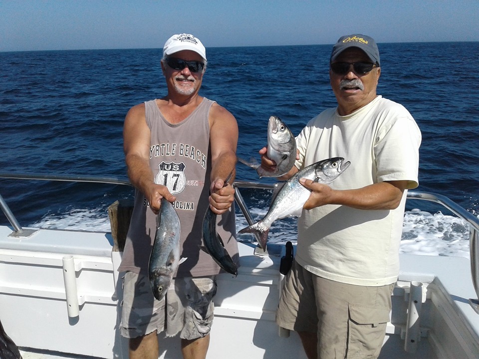 We picked at the BLUES today. There were a lot of fish around and everyone on board had fish but you had to work at it to get them to bite. They ranged from 2-1/2 to 8 lbs. We also had some BLACKFISH and BONITO.