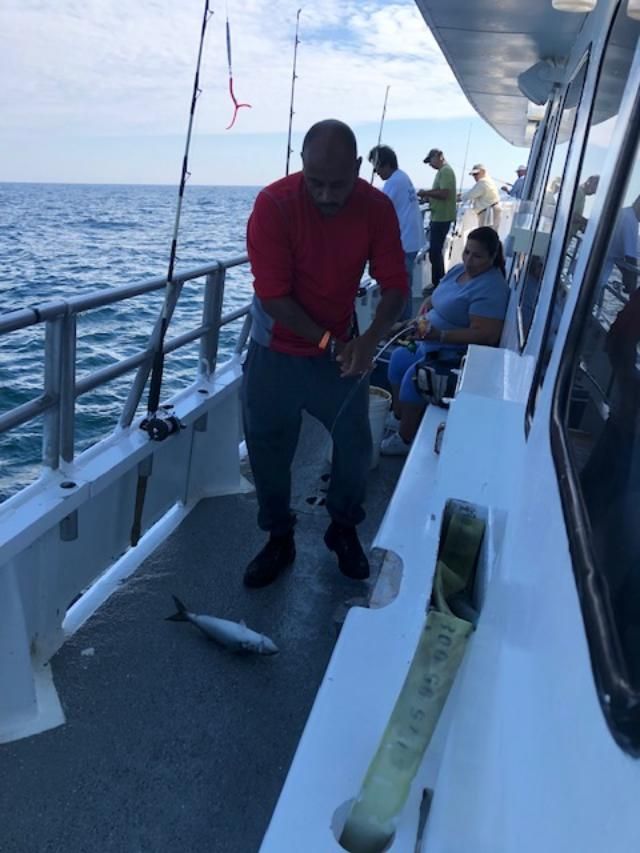 Today, we decided to fish a different area. It took awhile to find readings and we were able to pick away a slow pick on 2-6 lb blues with an occasional bonito. Our pool winner was Rick.