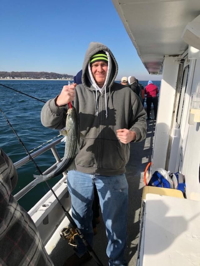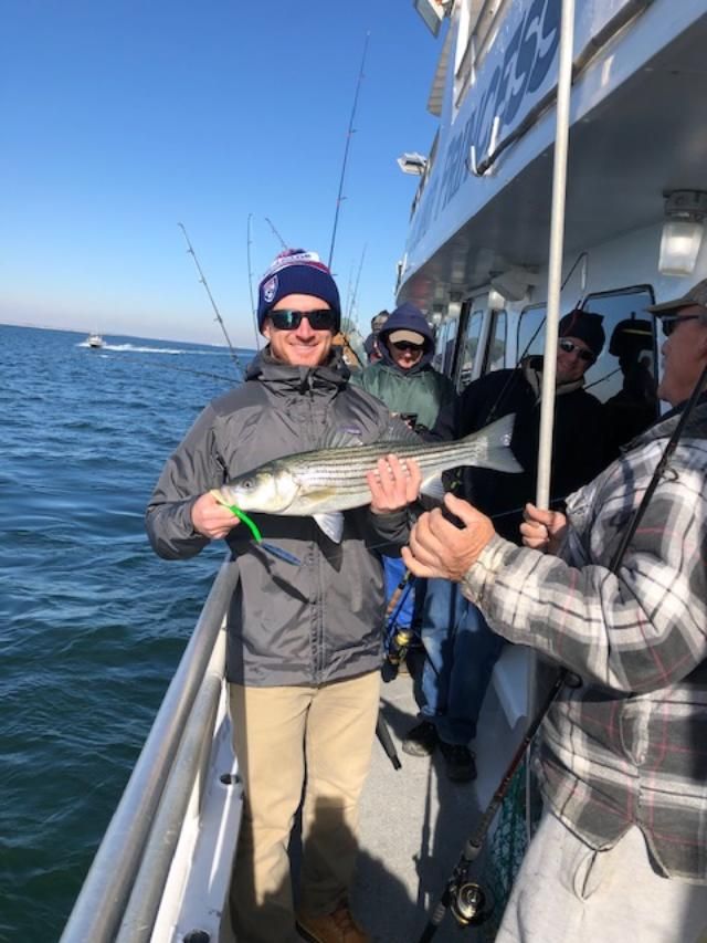 Today, we had great action on a combination of slots, throwbacks and a couple of bigger fish. There was plenty of bird life and fish on top at times along with excellent readings stacked on the bottom. We had plenty of action in numerous areas with a lot of fish around and action all day long. Shads and plain jigs worked the best. Our pool winner was Will Malle from Nutley, NJ.
