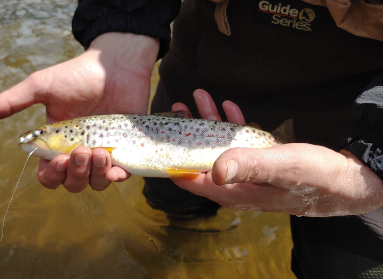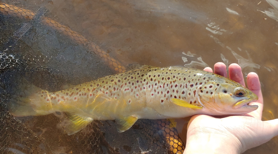 the fair-weather got my dad to come out for some trout fishing, he got two nice wild browns. I think the only two browns he's caught in years. (When are they going to stock browns again? - him every two weeks )