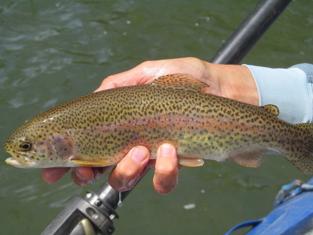 I wish we had started early and could have caught the dense over cast but instead go on the water at 11am under a clearing sky and bright sun, good for fly fishing, bad for spin fishing. Guide never saw trout caught on jigs before. One plunge pool we anchored up and I vertical jigged trout, much like they do for crappie down here, the guide was amazed !!