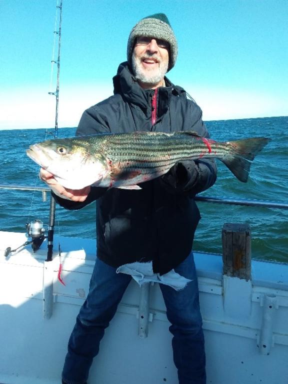 It was SUPER STRIPER FISHING THIS MORNING. We had our catch early and everybody on the boat had their limit. We had our limit catch of keepers, some 47” fish that we had to throwback, a lot of slot size fish that we had to throwback because we caught our limit, along with some BIG BLUEFISH. If you get out to the fishing grounds early, you stand a better chance of catching fish and today was a prime example of that. It was a great day and everyone on board was happy.