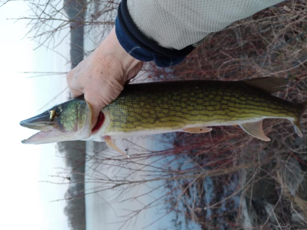 Caught and released a 20” pickerel in 52 degree Miry Run Lake this evening.