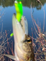 My partner & I decided to give the slime darts another go as i figured local ponds would be mobbed with b*******s. First we fished harrisville lake got 10 between us there. All little piney chains. Next took a ride & fished a mystery lake in Chatsworth/tabernacle area. Had some bites & I got 1 nice chain but not good. Third lake was in Atco/Hammonton area & it was insane. Landed close to 30 between us as well as getting bit off by a bunch of alligators crazy topwater bite watching them swim 15ft away to crash the bait. Super fun day I forgot how much fun these things are to catch. Didn't take many pics was to busy 😆