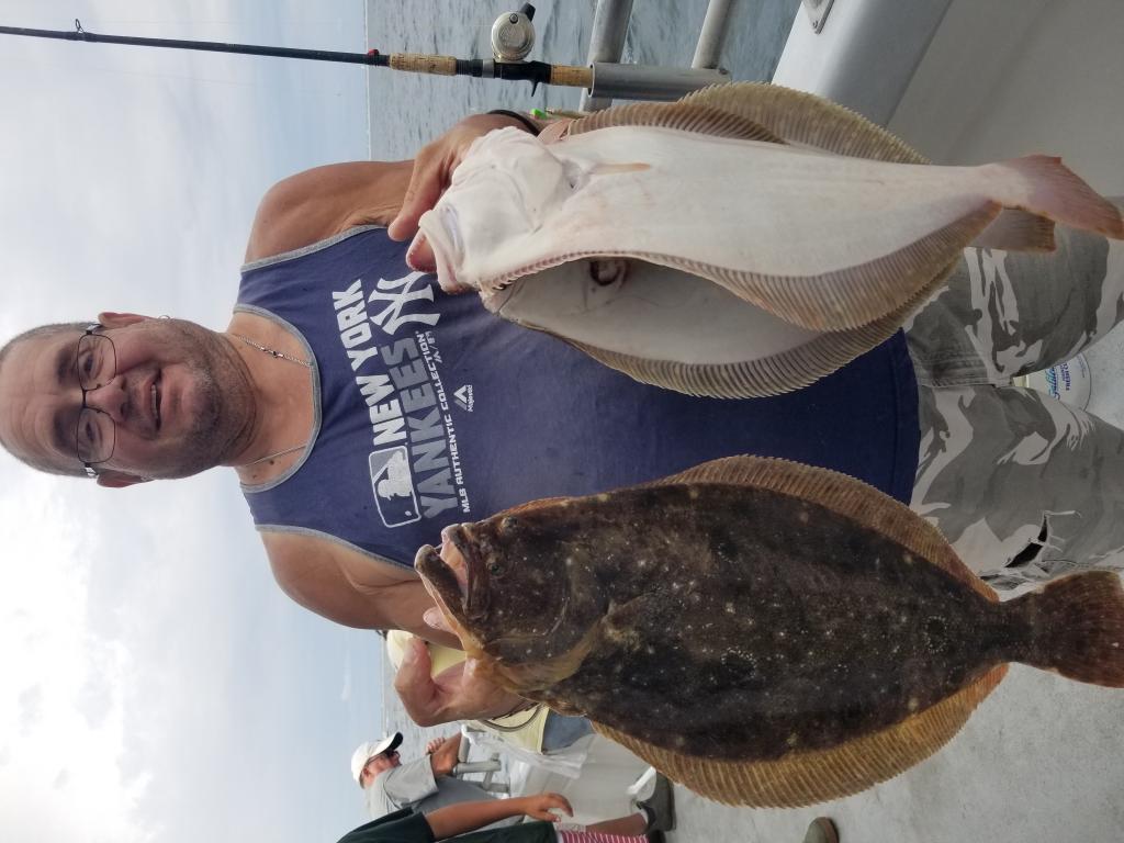 Gambler has had some good catches of fluke on our half day trips, along with a few big sea bass. Catches are being taken by both traditional fluke rigs with squid/spearing combo --and by jiggers using bucktail/gulp combos. We have been fishing in depths of 60 to 80 feet. The only time that the fluking is slow when we have not enough --or too much of a drift