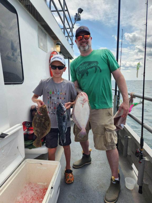 Mackerel - Bluefish - Sea Bass Saturday Night 7:30 Sunday & Monday 7:30AM Sunday 4PM - 8PM (FLUKE - 100' Paramount - Fluke 7AM - 3PM) VERY GOOD FISHING TODAY (SATURDAY) FOR MACKEREL, BLUE FISH, AND SEA BASS Fishing was very good today. When we first stopped everyone was catching mackerel and they easily caught there one sea bass limit Fishing Continued to be good all day until 12:00 when the blue fish showed up and they started biting. We caught Blue fish on bait and jigs. A number of people had their limits of blues, plenty of mackerel, and a sea bass. It looks good for tonight, and tomorrow! We are Sailing 7:30AM & 7:30PM There's a 4PMtrip for fluke and sea bass on Sunday. Offshore Tuna Trips Sail 10PM July 31 August 6, 13, 21, 27. Tilefish Trips We have added two southern Canyon tile trips to our schedule that will sail at 10PM August 14, 28. We also have trips sailing 10PM September 10, 17. The weather looks good for the weekend and, we have plenty of space available. We are sailing open-boat everyday at 7:30AM. You can purchase tickets online or pay at the boat. www.bigjamaica.com 732-528-5014 100' Paramount Fluke & Sea Bass Every Day 7AM - 3PM Tuesday through Sunday Ling Marathon Monday 6:30AM