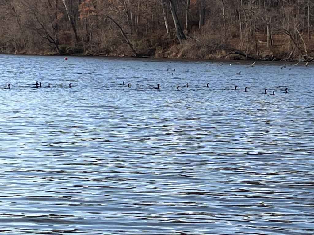 Went fishing in 38 degrees Carnegie Lake this afternoon on a cold, sunny day with a strong southwest wind. Caught and released 13 gizzard shad with a 1/32 oz twister tail jig on 2 lb test line and nothing on Walmart red worms 🪱. Late in the day gizzard shad were jumping with double crested cormorants, gulls, great blue heron, and two adult bald eagles 🦅 nearby. Cold weather fishing 🎣 is not fun.