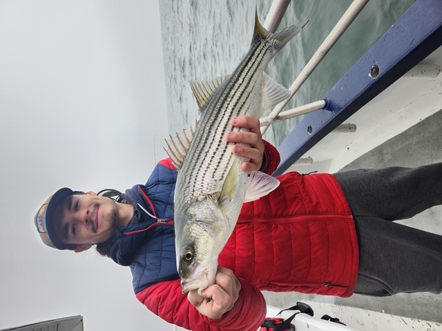 Hey gang, the day started out with a little easterly breeze and dense fog but that lifted eventually. A striper kind of day for sure. The bass were biting pretty much all day on birds and some rolls. Limits around the boat. Ben took today's pool. Everything was caught on jigs again. All slots and bonus fish like we've been catching them. I'll take this every day. It's so nice to see everyone go home with dinner. Great bunch of guys on the boat today. Had a few come back from yesterday. Sailing every day (weather permitting), heated handrails and heated cabin for your comfort. 7:30 a.m. to 2:30 p.m. fare is $90; spinning rods are $10 if needed. Plenty of tackle on the boat if you guys need it. Let's go fishing. Don't miss the bite. Here are a few pics from earlier today. We will NOT be fishing with the conditions forecasted for Wed. and Thurs. That being said, our next trip will be Fri. (Dec. 13th) with good conditions. Thanks, Capt. Scott
