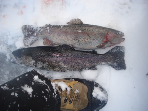 Why am I posting ice fishing pictures in August? Because I'm an ice fishing addict, and last winter I didn't get my fix. Last year I only got out 4 times in jersey, and 6 times in Connecticut. I'm relatively new to the site but if you're on Ishanty you might know I like chasing esox. Here are some of my pics, post your own pics of some monsters and scenery. Let's do a dance for the cold weather gods in hopes for a long cold winter. Post some pics!