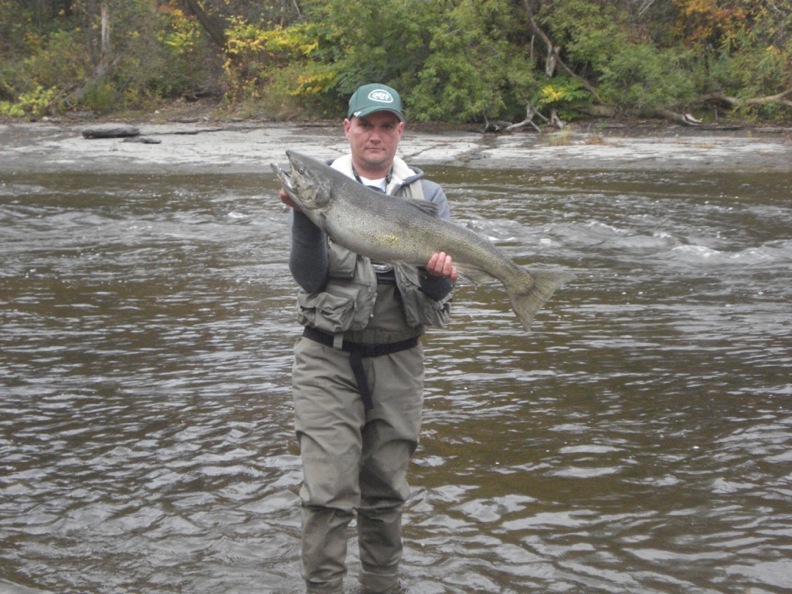 Hit one of my favorite creeks north of Pulaski saturday and sunday. Salmon were caught and none were under 10 lbs. Hit my 2nd favorite creek west of Oswego sunday evening and monday morning. There were Salmon everywhere stacked up thick. Again all fish caught were over 10 lbs. These creeks will be filled with rainbow, brown and steelhead trout in a couple weeks, ranging from 5 to 20 lbs!!! Here are a couple pics. GO BIG OR GO HOME!!! TIGHT LINES!!!