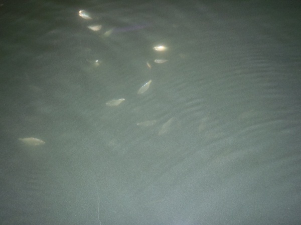 Went to SR looking for some Hybrid and caught this Pike about 10pm he is about 25 inches, didn't want to stress him so I just unhooked him in the water and took the picture. Had a light out for the first time. I wanted to see if it would do anything, as you can see in the picture it attraced herring. Not sure I'm hooked on using it, but we did catch this pike and one of the 2 Hybrids we caught using it. As my fishing bud Tom said (all those herring around the boat can't be a bad thing) so we will see.