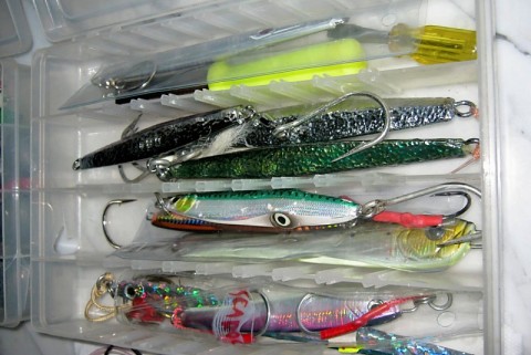 Many of the sponsors on this site like the Jamaica, Sea Devil, Voyager, Gambler and Prowler V are sailing through October and even into November for Tuna. (Check the Party Boat section on the site. I’ve had quite a few questions on this subject since our last trip on the Sea Devil from people on the boat and others so here you go! I am not an expert and open to any comments. If you have comments or questions feel free to ask. Party boat Tuna fishing has been spotty to say the least over the past two years or so but seems to be improving. If you are scheduled to go it makes sense to be prepared if you do hook up. Often you will only get one or two chances and it is over. In some cases the fish may come through in “flurries” and you must be prepared and have a plan of action if you want to catch fish. I have found that the key to a successful trip is to be organized. Prepare in advance for the trip and have a plan. Before I step foot on the boat, all my reels have been loaded with fresh line, all rigs are tied and all my equipment is organized in one bag. This allows me to find what I need quickly when I need it. By the time the boat leaves the slip, all rigs and jigs are tied on and ready for action. To sum it up, I will have a chunking rod, jigging rod and bait rod ready to go when we reach the destination. Having said that, I have compiled a post that will provide you with some basic information and tips with regard to Party Boat Tuna Fishing. I have provided a list of equipment and terminal tackle that has worked for me through the years. This post is directed to those who are new to Party Boat Tuna Fishing or to those who want to improve their odds by “simplifying” and being more prepared. There are so many rods and reel available for this type of fishing. Choose what you like. What I have listed is basic and has worked for me. I have always said, it’s not really how much you spend on equipment, it’s how much time you spend actually fishing. Tackle (rods reels) You need not spend a ton of money on equipment. I have been using the following tackle for many years and have caught my fair share of tuna. Rods Two 5.6-6.6ft med action rod rated for 30-80lb test. 6/0 Penn Senator loaded with 60lb test mono. Shorter one for bait and the longer one for jigging. Some anglers prefer a 7ft rod for jigging. Remember, the longer the rod, the harder it is to get the tuna in. Shorter “stand up” rods used the correct way will beat a tuna very quickly and can be used for jigging successfully. 7ft med action rod for 30-50lb test and High Speed Penn Jigmaster 500 or equal. I load it with 50-65lb braid. I use this rod for catching squirrel hake (ling) for bait and possibly Tile fish. 6ft 10-20lb spinning rod with appropriate reel for catching squid or sardines. Fresh bait is key. While the bait provided will work, nothing beats a fresh squid of sardine for tuna. Rigs 4/0-6/0 circle hooks on 5-6ft of 60-80 lb leader and 230-330lb spro swivels. I use Palomar knots for the rigs and tying on jigs. (See link for Palomar in “best of”)http://videofishingknots.com/palomar-knot.html I use triple fish leader or fluorocarbon. Tie the smaller hooks on the lighter leader and larger hooks on the heavier leader. I will bring 6 each for a trip per person. Triple fish camo leader or equivalent is fine and I see little difference in the catch, especially at night. Weight 3-10oz egg sinkers. Some times no weight works well(flat lining) when the fish are up high, other times it makes sense to be straight up and down and to use a heavier weight. Jigs I have had great success with hammered jigs with a single hook in the 7-10oz size (pictured below) We also use Stingo, 150-200 grams and Butterfly jigs in the same size. We have caught fish on both. Jigging can make the difference between a good trip and a bad trip. Jigging works best in the bow of the boat. You can jig either side and your line won't rub on the boat. Use a heavy enough jig to go straight down. 10 oz will be best with the heaver rental rod and larger 6/0 reel. Sharpen the hooks. The tuna may be at different depths. Generally the Capt. will give you an idea what depth if he sees them on the screen. I usually put the reel in free spool and count slowly to ten or so. This will put you in the zone. A 1/8 to a 1/4 of the line on the spool will be out. Try different depths. We caught most of ours at about 100ft-140ft. When you reach your depth...Sharply lift the rod up and drop the tip to the water. When you feel the jig come tight on the line lift sharply again. That is how we caught most. Sometimes they hit on the way down, on the lift or reeling it up. You will out fish bait if they are under the boat! Don't tire yourself out. When you hear from the Capt. Fish under the boat at 140-150 start jigging. Tools See photo below. Pliers, Knife for bleeding(mate should do it) Tool for reel and screw driver. Helpful hints…. Again, the best tip is to be prepared. When the Capt. Yells, “Fish under the boat 150ft” Your bait should be down there or you should just have to grab your Jigging rod and start jigging. If you are not prepared, by the time you get ready the fish may be gone. Jig in the bow. If you are not getting a hit, reel up a few cranks and Visa Versa. When fighting the fish keep your knees bent and hands high on the grip for leverage. Pump slowly and reel down. Try not to be overwhelmed with the fish. If it is hooked well and you have good line, it will not get off. Stand your ground and beat the fish as quickly as possible. I set a relatively heavy drag. The longer you have the fish on the better the chances it has breaking off. Most fish are lost to tangles with other anglers on Party boats. Hopefully the fishing will continue to improve and you will get your chance. When it comes be prepared!! Good Luck, Leif