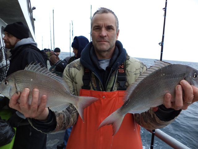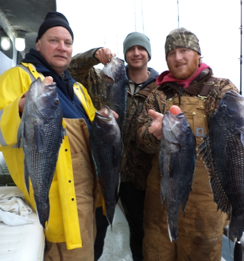 Sailing 11PM Wednesday night Returning Thursday Call the office for reservation Information. 2-26 Offshore Sea Bass Report The Sea Bass do not want to stop feeding! Hopefully we will get a break with the weather for the Wednesday night trip. If we do not then today was the Grand Finally for the 2013 Winter Giant Sea Bass Season. With the threat of increasing east winds we made a quick trip to the wrecks, hoping for a night bite which has occurred often this season. The ocean was flat when we arrived but, the current was screaming! Other than a few ling and an occasional sea bass fishing was very slow. As the sun rose the fishing began to pick up. By the time we headed home we had another boat limit of Giant Sea Bass up to 7.75LBS and many porgies. The pool winners were: Mike Meloy from Swarthmore PA with a 7.75LB Sea Bass, Gus Bouikidis from Phila PA with a 6.75LB Sea Bass. If we do make it out Wednesday night I expect to have another good trip. After Sea Bass closes we will head to Dry Dock for a week or two and when we return we will either make a cod trip or two or the Striped Bass may be in by then. For our complete schedule go to: www.bigjamaica.com We are now taking reservations. 732-528-5014 Capt. Howard Bogan More photos at: facebook.com/TheBigJamaica