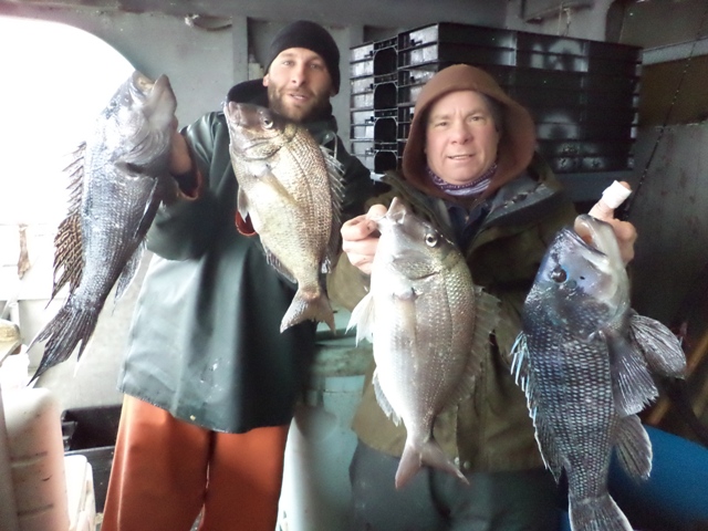 The winds dropped off early enough for us to make our final trip of the 2013 Winter Sea Bass Season. Fishing started out very slow due to the 18’ swells from the day before. As the day went on and we moved to a different area fishing picked up and many passengers caught their limit of Sea Bass and 10 to 15 porgies each. The pool winners were: Antonio Fonseea from Colonia NJ with a 7.5LB Sea Bass, Craig Borrell from Topton PA with a 6.5LB Sea Bass. Except for a little rain in the middle of the morning it was a nice day and a good trip for our final trip. Too bad the season is closing but, we will have to wait and see what regulations they will come up with for the rest of the year and next winter. The Jamaica will be on dry dock for a week or two and will begin Striped Bass Trips later in March. For our complete schedule go to: www.bigjamaica.com We are now taking reservations. 732-528-5014 Capt. Howard Bogan