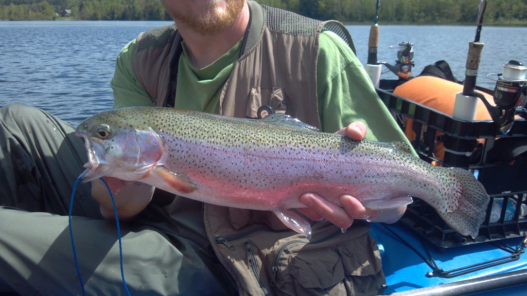 went up to Vermont last week with some friends for an annual trout fishing trip. fly fished, spin fished, kayak fished, river fished, pond fished, stream fished... the trout were everywhere, and cooperative. after a day out with a fly guide we decided the 2 year old "trophy trout" were the most entertaining. like our fall stockers, but 6 months older, these are large 16"+ rainbow and browns, with many going over 19". they stock some of them in rivers where they have a chance to hold over, but like we do in NJ, a lot of them also go into shallow bass ponds where between the eagles and the heat of july/august, they will not live through the summer. the trophy fish are stocked around the same time as the regular 1 year old stockers in the spring. In VT, trout season closes 11/1, so they don't do Fall or Winter stocking.