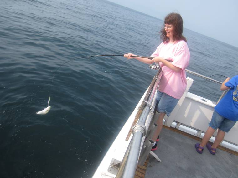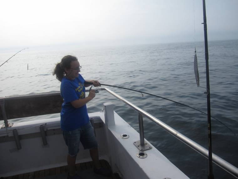 The Whole team.... FAMILY TEAM SUPER COOL hit the Robin this morning. Went yesterday and had a blast and today was just simply AWESOME! If I said we caught over 100 blues amongst the 4 of us this is most likely an understatement as we lost count after the first 2 hours. Crazy and insane fishing on the smaller model blues on the light tackle made for an outstanding outing. Everyone was hooked up over and over again. A few fluke and robins added spice to the mix for my girls.
