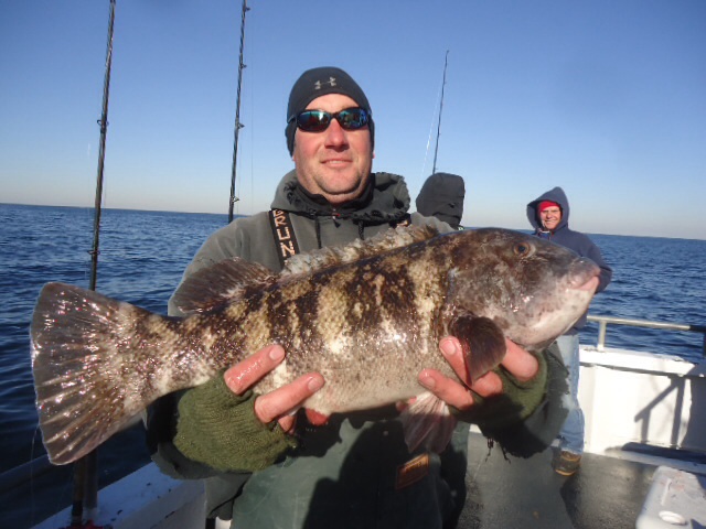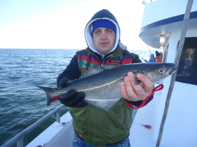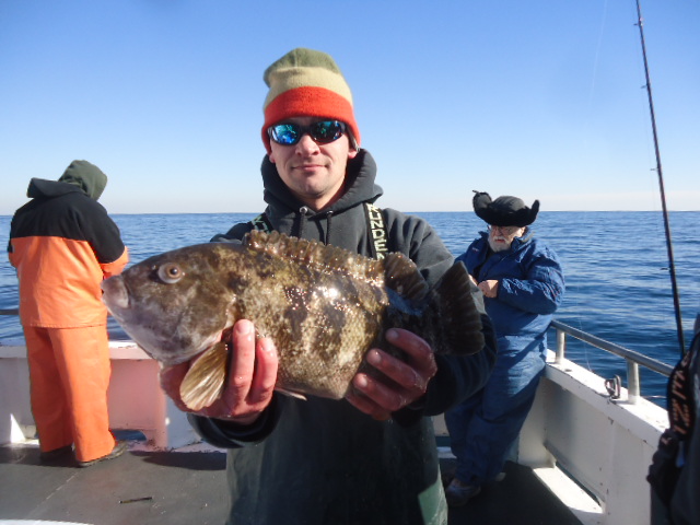 1-30-14 Flat calm and beautiful and today,,chilly yes but really nice..We headed back offshore today looking for some life and we did find decent life on every drop we made..We immediately had some nice blackfish jump on the baits,,again shrimp or clam tipped on a crab worked well...Few ling here and there,,a nice pollock....plenty of bergall bites kept you interested and looking for the right bite...No complaints,,,with the water this cold I was happy to have the life we did...Some guys just targeted the Blackfish and ended up with some nice ones as you can see below,,,and some guys just looked for some ling and got into those as well..no giant numbers but again I was happy with the bites we had..Gulp shrimps and swimming minnows chartruese or pink did well with the lings again..Check out some pictures,,,,TOMORROW LOOKS REAL NICE AGAIN WITH WEST WINDS...SEE YA FOR COFFEE!!any questions give me a call..