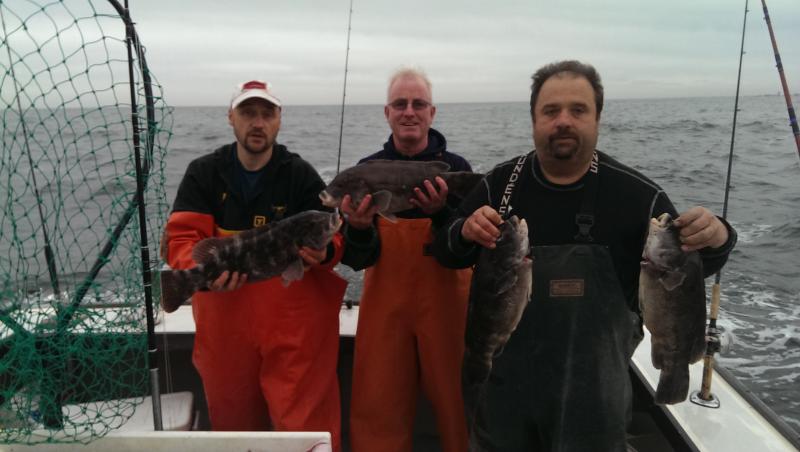 Today was a open boat Tog trip and the fishing was excellent for a few guys aboard. The Tog today were nicer size then the last few trips. Alex and Danny were running neck and neck today . Alex finished up with 17 keepers orl and DANNY had 16 orl. Everyone else had a few keepers each. We had another full N.Y boat limit.