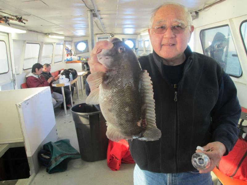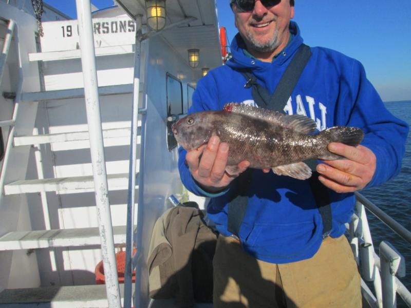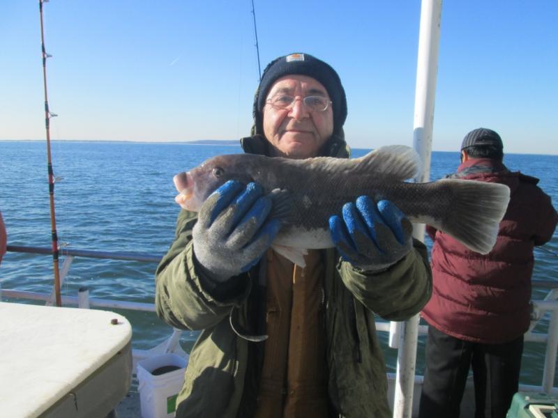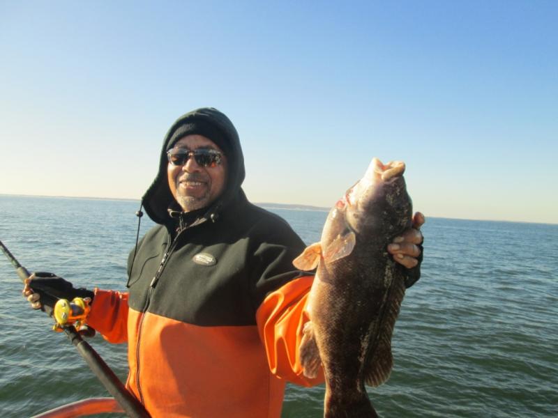 Started the day off shore where we found some nice tog and a few cod but were unable to stay with the impossible anchoring conditions. At the end of the day when the wind flopped and the current ran the bite turned on. Barry Searcher from Allentown took the pool with a 10 pound cod and William was a close second with another cod.