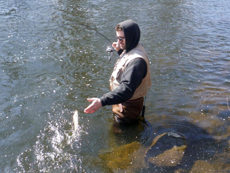 Opening day was slow for me and most others in the river stretch i hit, but i headed back the next morning with my wife's uncle (down from vermont) for an easter morning rainbow beatdown! ...started off slow again but thankfully he had some tricks up his sleeve and we were able to finesse some bows into biting and we both ended up with a few cutters and one tagged cow each! first nice fish for me since ice jigging up some perch in early march!