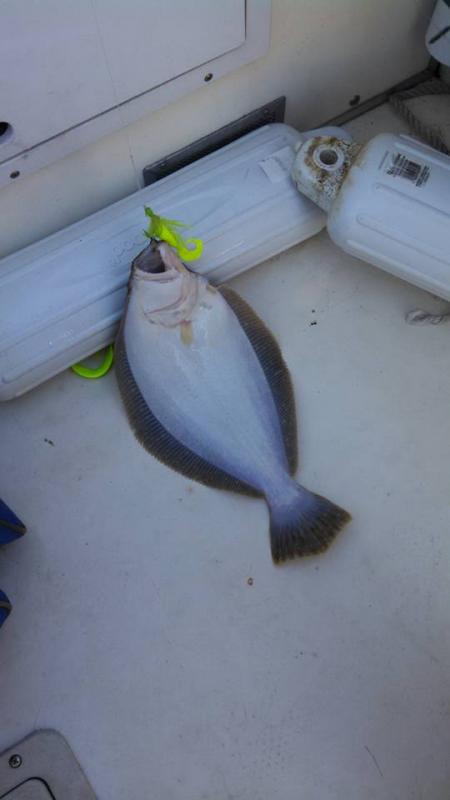 Rode out the low tide in Shark River and started out a little later on the breezy Saturday morning. Met by small chop in the ocean with the 10-15 knots blowin'. Checked in with some of the early birds who shot up north and didn't sound like too much was going on. Decided to save some gas and hang in the church area. Moved around in 57 to 58 degree water all day. Drifted over the marks and had some bites and hangers but lost a few cranking up. Managed a 16 incher on a Sharkbite chartreuse teaser and a few skates. Partner boat in the area landed two keeps, some shorts and some smaller sea bass. Warmed up for a nice ride back in and the boat is purrrrrinn!