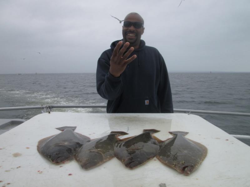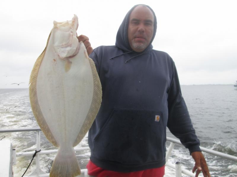 Not many people down today for a great fishing day. I knew yesterday if the forecast was right we would have good conditions and catch fish. The fluke were hungry and everyone had plenty of shorts and all but one had at least one keeper to take home. Bait and jigs both worked fine today. Aerial Collardo from Perth Amboy had the pool with our last keeper of the day and his second a nice six pound fluke.