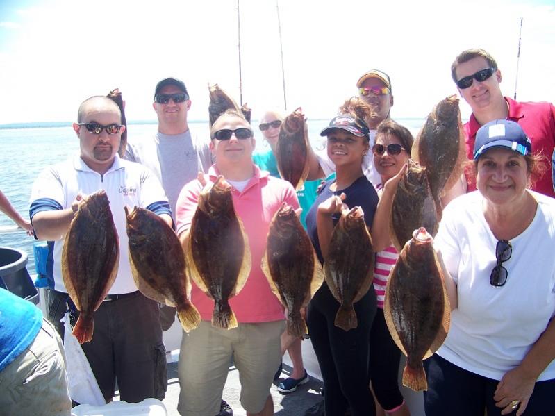 Had the Hudson County Chamber of Commerce crew out with us today for a day of Fluke fishing. Weather was perfect and we actually had Good conditions for a change!