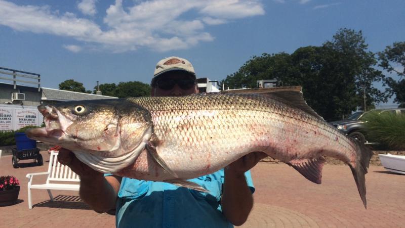 that is a nice striper. hope we hook up on some when we are in town. my main focus is fluke but i will take a striper that big any day