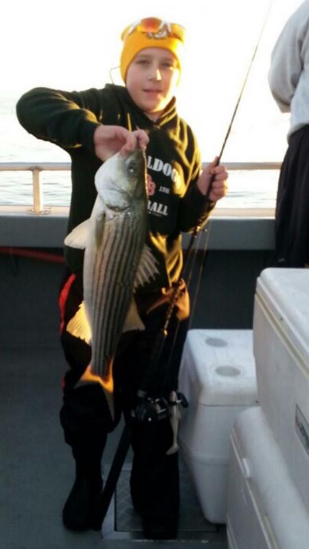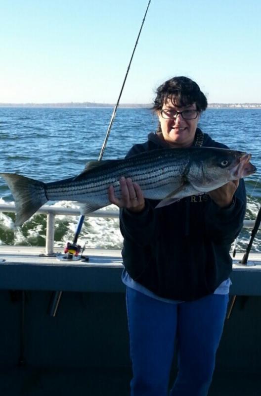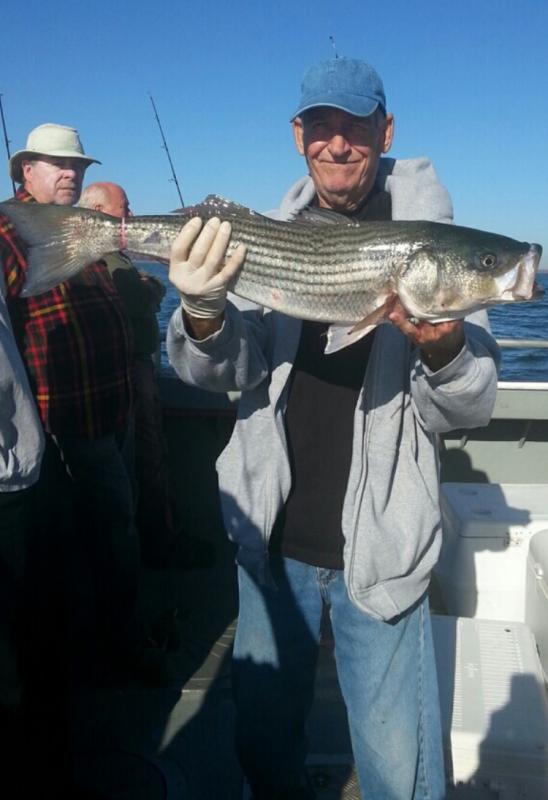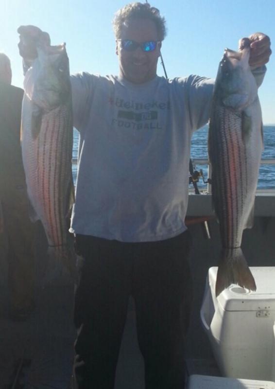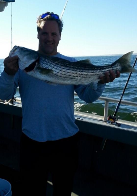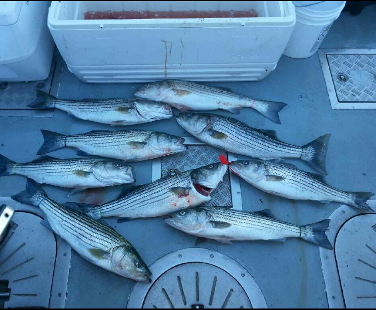 Today aboard the Down Deep Bull we ran another 6 am open boat Striped Bass trip for a big crowd of great guys, gals and kids. With high expectations everyone was ready for action, and once again they were not disappointed. Landing many many fish, with everyone taking home what they came for and fish up to 19 lbs. today. Big smiles and big bags of filets and another great day. Thank you everyone for sailing with us and thanks for booking forward, more great fishing ahead. Tremendous amounts of bait, insane amounts of Stripers all sizes and more filtering in everyday combined with the weather we are having, these fish will remain right here for some time. Check our schedules, charter up or open boat and get right on 'em.