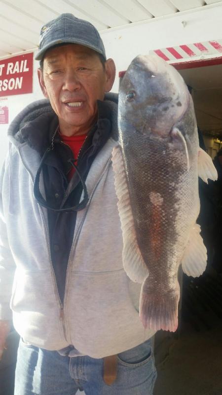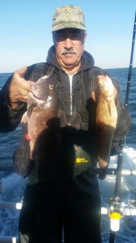 I went right off looking for the sea bass and found the dogs hot and hungry. Tried a little shallower and also had the dogs. just a few sea bass and ling so I went inshore where we had good tog fishing last Sunday and found some nice tog with a few sea bass and cod. Tried one closer in and had more tog with some more assorted species including ling porgy sea bass cod mixed in with the black fish. We are ready for tomorrows black fishing. Rodger Lee Sayerville had todays pool with a nice white chin.
