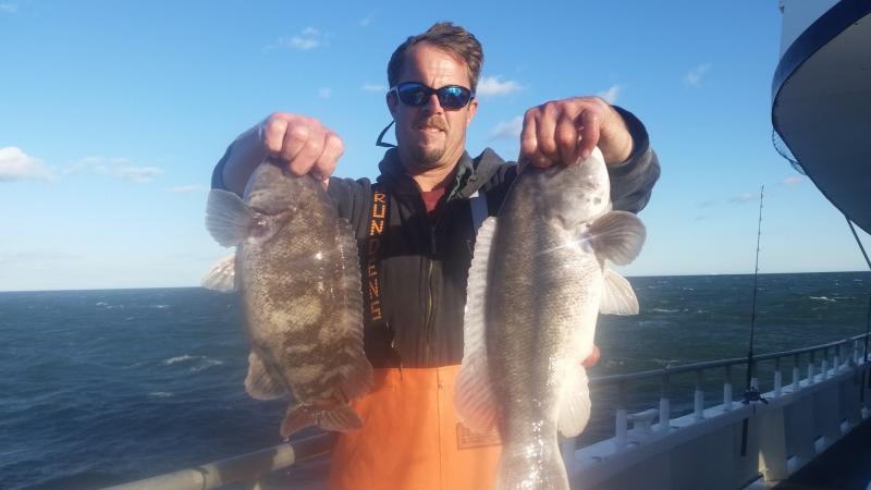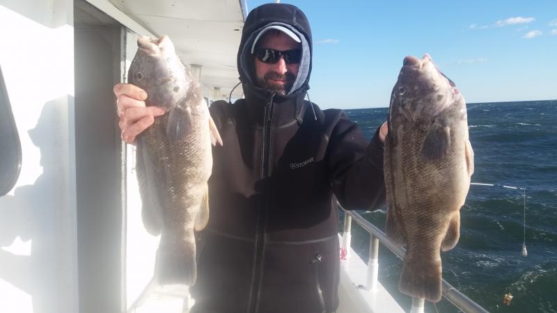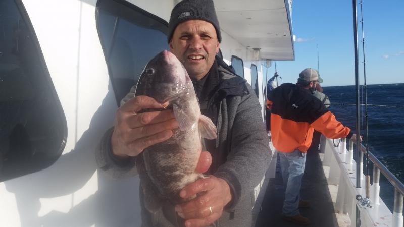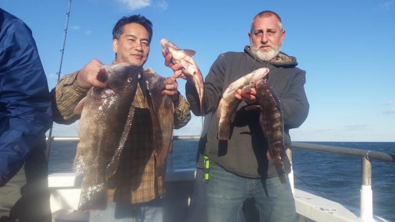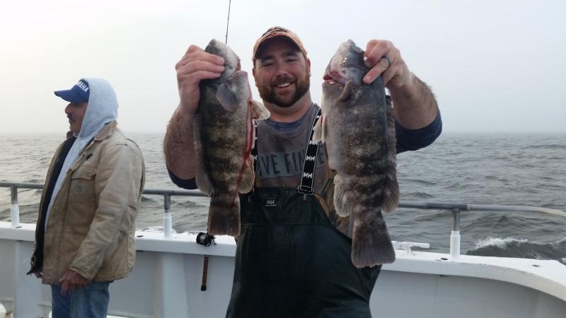 2-14-15 Besides the fog it was a pretty nice day,,not a drop of rain like they were saying..Fishing started off pretty decent and Pauly had his limit of keeper Blackfish by 930...others picked at em and ended up with maybe3,4or 5, and then we started the drifting again due to the wind coming up against the current and the rest of the day we just picked a few here and there.we definately had our best fishing in the morning....But overall a good day I thought...just some didnt have the fish dialed in like some others....Tomorrow I like,,hard west winds are gonna keep the ocean flat calm...We are not fishing far off the beach so its gonna be a good day tomorrow...See ya for coffee!!come on down!!pics