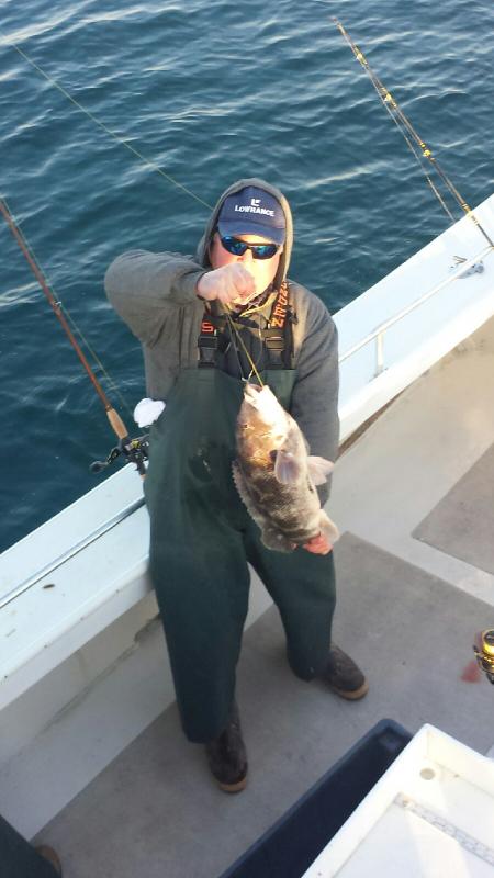 After a week of weather and not knowing what to expect, Capt. Rob ran another 6 am open boat Blackfish trip with a great group of returning guys. Picking up right where we left off, things haven't changed much and the fish continued to chew. In the morning we had a good inshore bite. Ran off a bit and again had a decent bite, until the conditions changed. By that time it was time to head home and everyone had what they came for. Mike led with eight, Pete had six, Joe had the big one at 8 lbs, and everyone else ORLS. Dogs were barking today. Thanks guys for sailing with us, another good day.